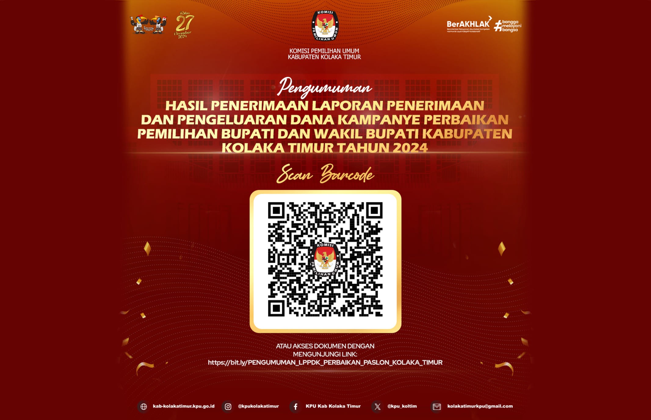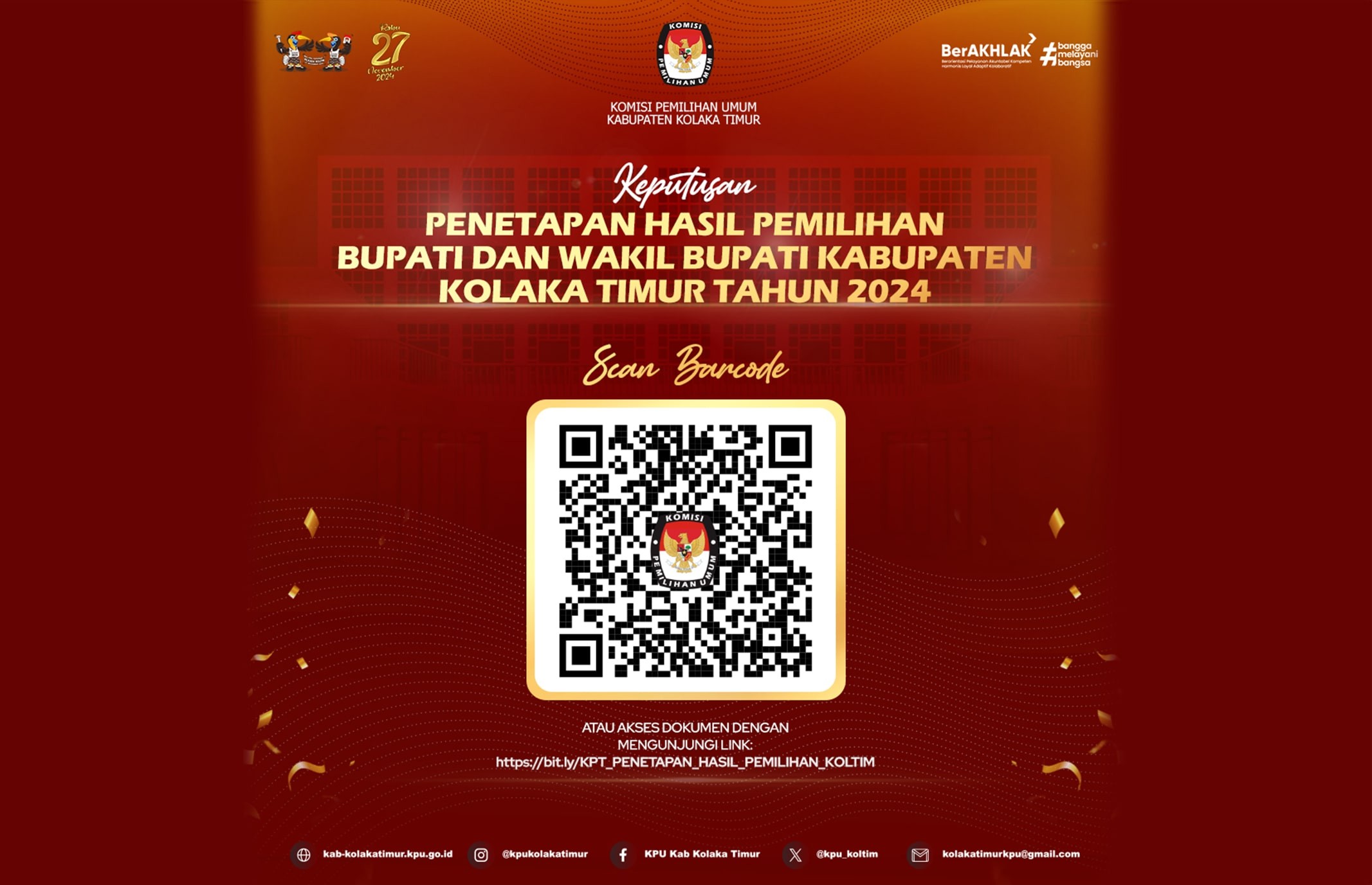 #TemanPemilih, berikut Keputusan Komisi Pemilihan Umum Kabupaten Kolaka Timur Nomor 777 Tahun 2024 tentang Penetapan Hasil Pemilihan Bupati dan Wakil Bupati Kabupaten Kolaka Timur Tahun 2024.